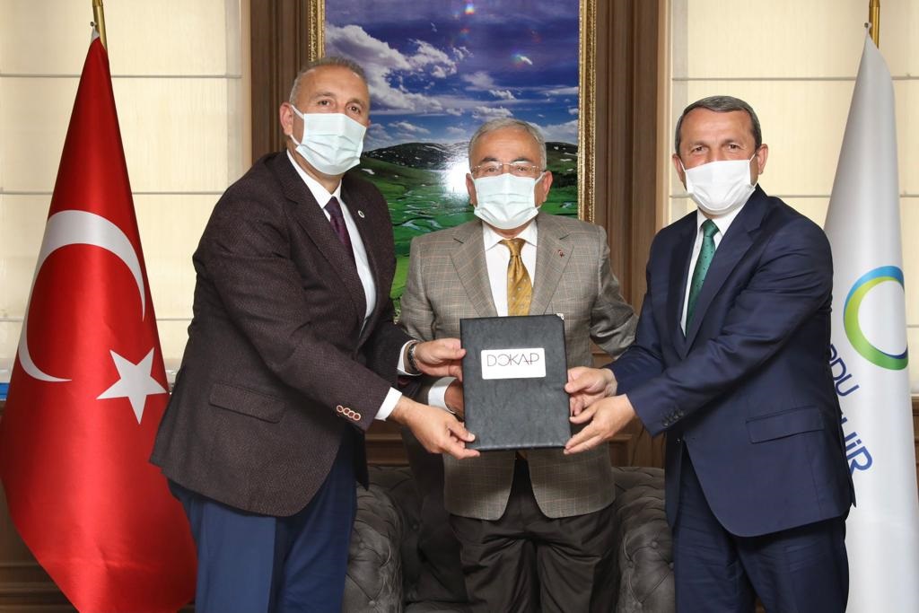 Ordu Büyükşehir Belediyesi’nce hazırlanan ve Doğu Karadeniz Projesi Bölge Kalkınma İdaresi Başkanlığınca (DOKAP) desteklenecek 3 proje için protokol imza töreni düzenlendi.Başkanlık makamında gerçekleştirilen protokol imza törenine, Büyükşehir Belediye Başkanı Dr. Mehmet Hilmi Güler, DOKAP Başkanı Hakan Gültekin, Akkuş Belediye Başkanı İsa Demirci ve DOKAP yetkilileri katıldı.BAŞKAN GÜLER: “PROJELERİMİZ SES GETİRİYOR”Projelerin imza töreninde bir konuşma yapan Büyükşehir Belediye Başkanı Dr. Mehmet Hilmi Güler, “DOKAP bizler için çok önemli bir kurum. Biz burada bir havza yaklaşımı modeli uyguluyoruz. Düşünen, Üreten ve Yarışan Ordu sloganıyla yola çıktık. 3 adet projemizin sayılarını daha da artırmayı düşünüyoruz. Ordu’nun 6 bin kilometre kare kara alanı, 3 bin kilometre kare de denizi var. Fakat denizi hiç devreye sokmamışız. Şimdi denizlerden daha fazla yararlanmak için başlattığımız projeler ses getirmeye başladı” dedi.“TARIM VE HAYVANCILIĞA CİDDİ DESTEKLER VERİYORUZ”Tarım ve hayvancılık alanında birçok projeyi hayata geçirdiklerini vurgulayan Başkan Güler, “Soya, siyez buğdayı, kışlık sebze ve meyve üretimlerini destekledik. Doku kültürü labaratuvarı oluşturduk. Bu labaratuvar tüm Karadeniz’e hizmet verecek. Biz klasik belediyecilik yapmıyoruz. Bu bağlamda da tarım ve hayvancılığa çok ciddi destekler sağlıyoruz. Çikolatayı kakaodan direkt üretmek istiyoruz. Bunu yaptığımızda Türkiye’de ikinci kuruluş olacağız. Fındıktan ülkemiz 2 milyar dolar kazanıyor. Çikolatayla birleştiğinde bu rakam 8 milyar dolara çıkıyor. Ayrıca fındıktan aktif karbon üretmeye başladık.